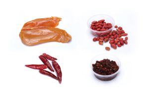 原料: 花椒 干辣椒 蒜切片,姜切沫