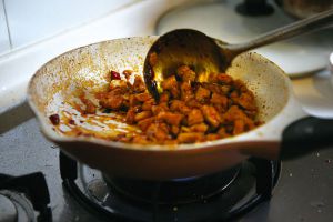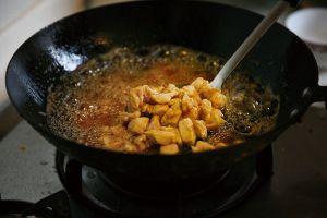 最后放入炸过的鸡肉块和花生翻炒均匀即可。