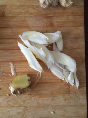 鸡肉洗净斩小块(小块才好入味);青椒(因为我儿子要吃所以我用的是二荆条青椒)切1厘米左右的段;生姜、大蒜切片;八角一颗、桂皮一小段;鸡肉用料酒、耗油拌均匀放入冰箱保鲜腌制1-2小时。