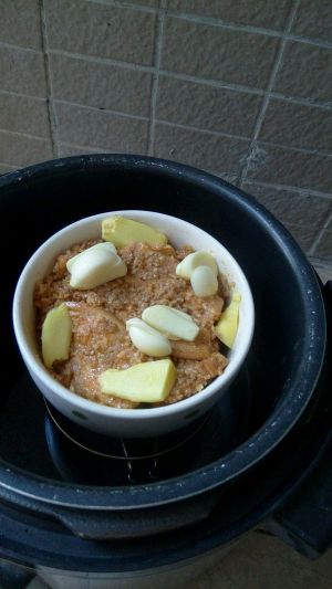 上面放姜,蒜。好开蒸,就按下饭挡即可。简单吧!