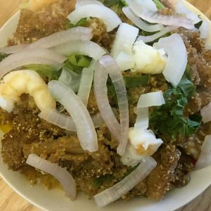 出锅,撒入葱花,好美味呀。你也能够闻到香味的吧。