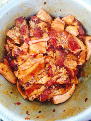猪五花切成厚片,放入各种调料煨半小时