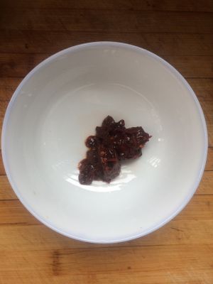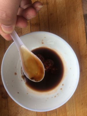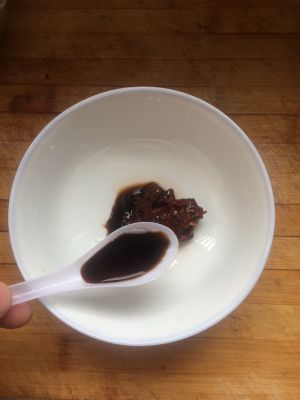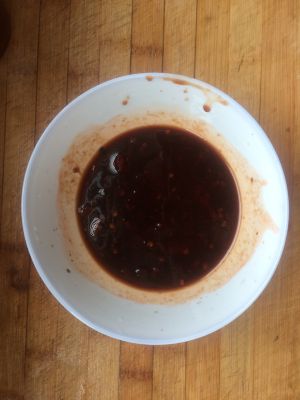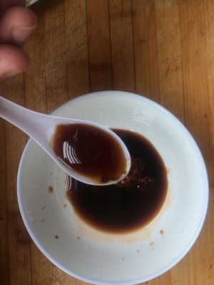 木耳先泡水,拿个碗准备酱料:生抽2勺、老抽1勺、盐1/2小勺、白糖1大勺、米醋1大勺、辣椒酱1勺、生粉2勺、水2-3勺,搅拌均匀