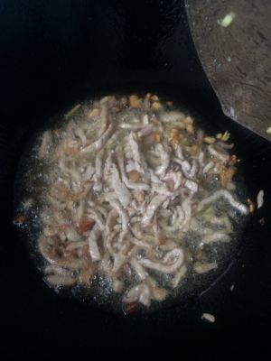 热锅凉油,油热后放入肉丝翻炒成白色。