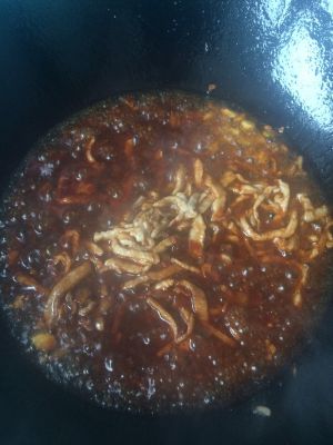 翻炒几下,就可以放入调制好的酱料(下料前再次把酱料搅拌均匀),大火翻炒,呈粘稠状即可熄火出锅
