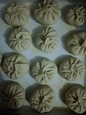 图片找不到了,这是第二次吃的时候稍微热了一下。包子包好后蒸四十分钟差不多了