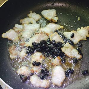 五花肉煎至两面金黄放入豆豉煸炒出香味