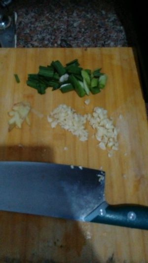 咸菜干切碎,姜切丝,蒜切碎,葱切段备用