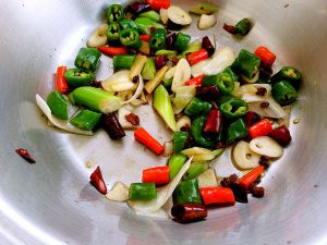 炒锅放适量油,火不要太大,加入花椒和红辣椒爆香