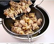 腌制好的鸡丁放入160度的油中,炸3分钟,将外皮炸至金黄后捞出