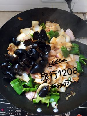 洋葱。青椒。木耳。切好备用。 肉忘记拍照啦。把肉煮了加点姜和料酒。去腥味。
