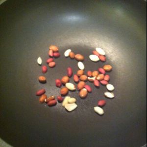 锅烧热,下入花生加热一下,如果是生的多炒一会,熟的就加热即可