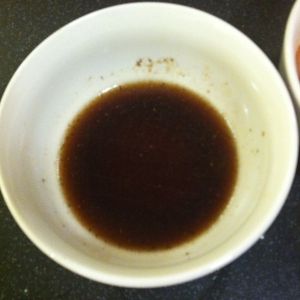 一勺醋,一勺半糖加料酒半勺,生抽半勺加一点热水调匀成汤汁