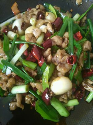 放入葱蒜苗起锅