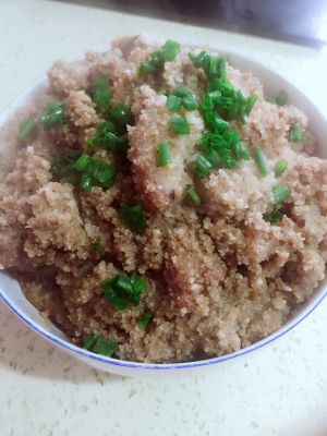 香味四溢,蒸好后撒入葱花,美味的粉蒸肉完成了