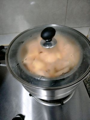 上锅水开后小火蒸50分钟到一个多小时都可以 (因为时间不够 我蒸了半个多小时 肉不是很耙pa)