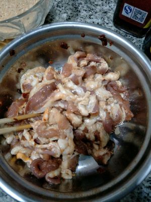 放料酒 酱油 豆瓣酱 一点点盐 腌制十多分钟 (切记不要放咸了 米粉里面本身带有盐)