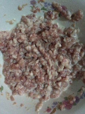 热锅冷油,下肉末翻炒至发白,来点白糖。