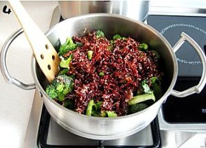 热锅爆香姜蒜末,加入西兰花,大火翻炒5分钟。
