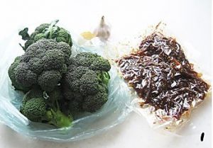 原料:西兰花400克、灯影牛肉丝300克、姜蒜各少量。