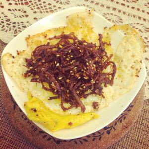 手洗干净,顺着牛肉的纹路撕成细丝,喜欢口感焦一点的话撕的尽量细…这步骤太磨耐心了,几次我都想掀桌!哈哈!撕好后我放大盘里晾了一晚(撕完当时就做应该也可以吧)。