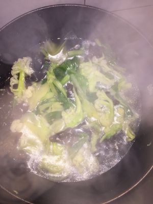 青菜其实油菜白菜都行,新鲜就好,我比较喜欢油菜,洗好,放进水中煮熟捞出。当然什么是熟,个人掌握,有人爱吃软的,有人喜欢脆的。煮菜汤不要倒掉。