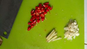 这里我用的是香菜就没有用葱花了,香菜更香,不喜欢的朋友可以更换成葱花哦 小米辣自然是必不可少的,这里我加了三颗