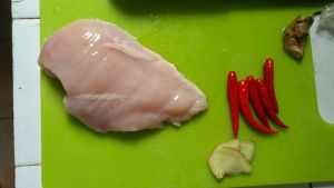 鸡胸肉,大蒜,指天椒食材准备好,鸡胸肉拍拍肉更嫩
