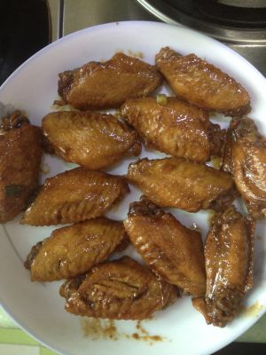 锅中放入少许油,热锅冷油,将切好的葱姜放入锅中爆香,将腌好的鸡翅放入锅中煸炒,放一勺酱油,待双面金黄后,倒入可乐,没过鸡翅,大火炖到可乐的汁收干即可。PS:汁快干时要翻炒鸡翅,以免鸡翅烧糊