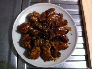 汁烧粘稠,出锅,先夹鸡翅。