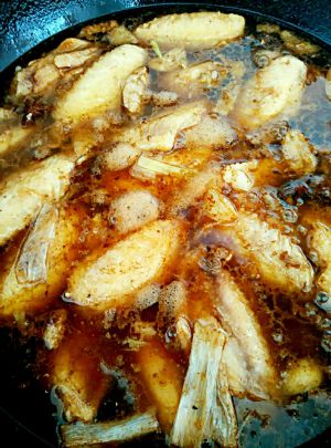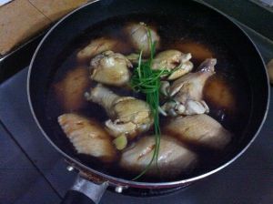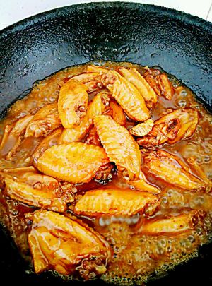 加入鸡翅,小火慢炖20分钟后,大火收汁。