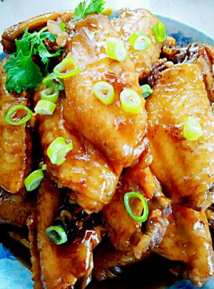 鸡肉煮熟后,大火收汁。装盘,记得锅内剩余的汁水也要浇淋在鸡翅上哦~