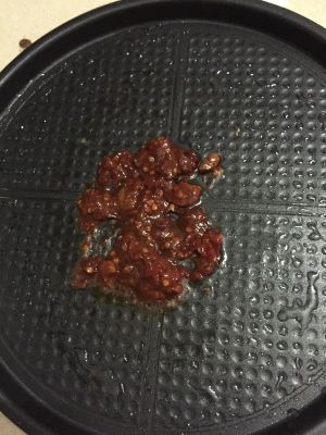 电饼铛预热刷油,加入豆瓣酱炒出红油!