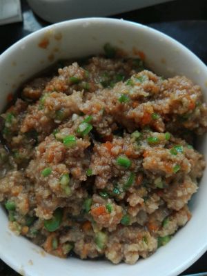 把茄子切小块,肉末用生抽,盐,腌制一会,小米葱切小段,