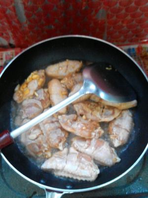用葱和姜爆炒,加味极鲜和腌制好的鸡翅,翻炒几次鸡翅,倒可乐,如果鸡翅炒的并不多,一瓶可口可乐可以就倒四分之三,太甜不好吃,等鸡翅收汁就哦科了
