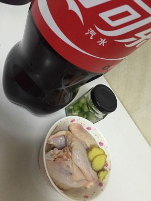 炒锅内放入姜和八角炒出香味。倒入可乐,可乐大约能没过鸡翅,放入酱油和盐调味。调至中小火收汁。