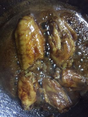 收汁时候需要经常将鸡翅翻身,防止烧焦粘底。当汁快收干时就可装盘。