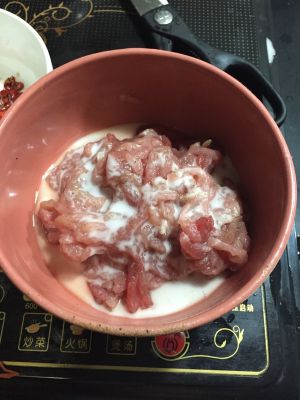 淀粉加极少量水,倒入腌制好的肉丝中抓匀!