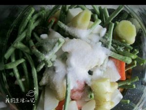 把泡出的盐水倒掉,加入适量的糖,米醋,一起搅拌均匀
