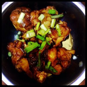添加蒜,生姜,八角,出香味后加入,浸没鸡翅的可乐,再加耗油,酱油。大火煮10分钟左右。ok出盘。