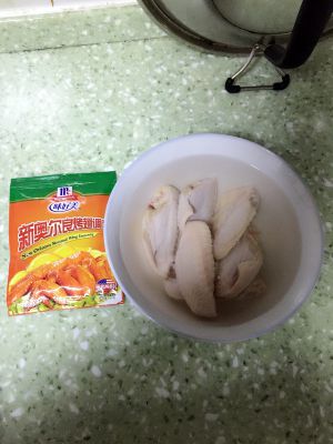 将新鲜的鸡翅中清洗干净,大喜大奥尔良烤翅调料准备好