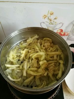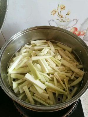 茄子水杀好后,用手把茄子多余的水分捏干。