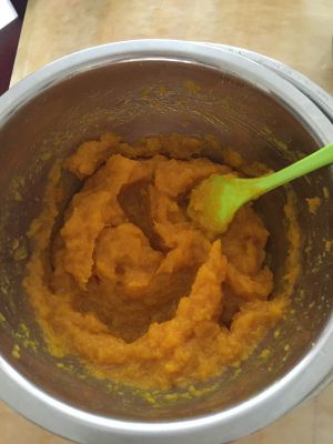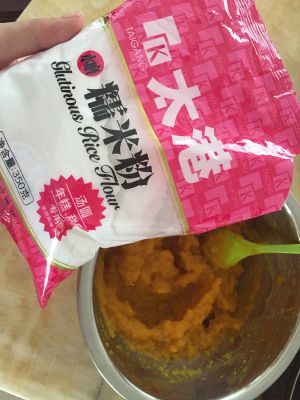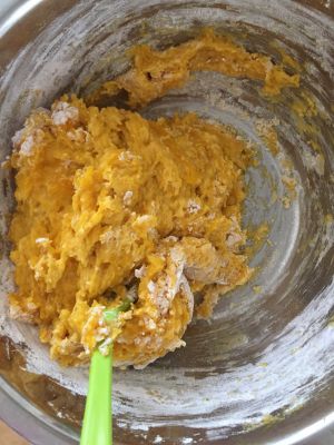 南瓜去皮,碾压成泥。将糯米粉与南瓜混合,加入融化的黄油和白糖,揉搓至不黏手方可
