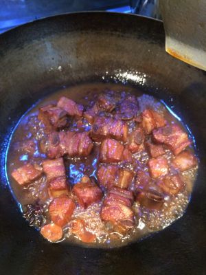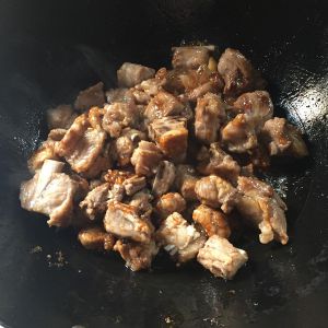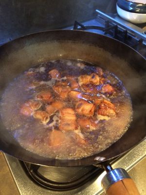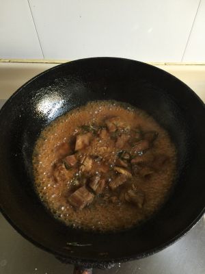 炸完后捞出,锅里留少许油,下冰糖,生抽老抽,料酒,炒至冰糖融化