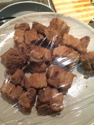 肉焯好了 大约用了半小时 肥油已经出去不少 肉香四溢 包好备用