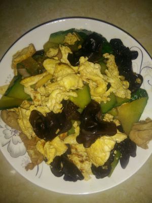 锅中少量油,葱姜末炒香,放入肉炒熟,加入适量味极鲜酱油,翻炒均匀。倒入木耳黄瓜,稍微翻炒一下,放入提前炒好的鸡蛋,放适量盐,翻炒均匀即可。
