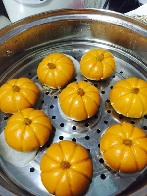 蒸锅水开上汽后,入小南瓜生胚蒸十五分钟左右,熄火焖4分钟左右即可。