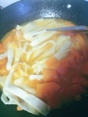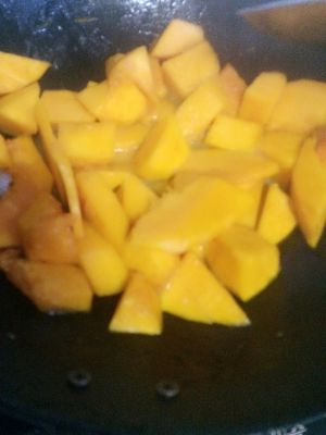 倒油,放生姜,南瓜翻炒一会,加水,糖,盐,焖会至南瓜变软
