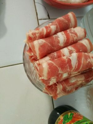 肥牛片先用沸水煮一下,撇掉浮沫,用净水冲洗一下