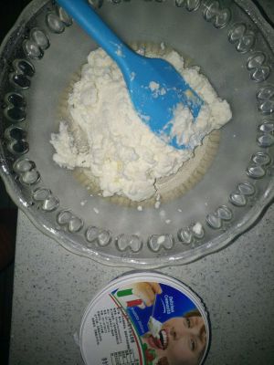 1、加材料。 在水晶碗里加入鲜奶油300毫升、马斯卡彭起司500g、咖啡利口酒45毫升(可以换成杰克丹尼 )、香草精 1/2茶匙、咖啡粉1匙和糖三勺(糖可以按照自己的喜好)。